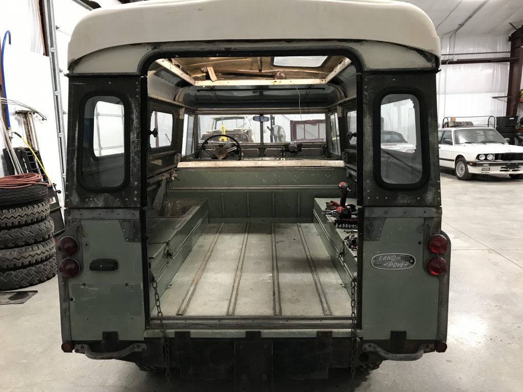 1962 Series IIA 109 3-Door Wagon purchased from Ike Goss/Pangolin 4×4 who purchased the 109 from the family of the original owner. * Thanks Ike for letting this one go.A very original truck with an absolute ton of history. The original flat front apron still in tact, very nice deluxe hood. One of the dreams the original owner had for the truck was to add a Dormobile roof…….probably a result of having slept on hard ground, or wedging himself into the back of the 109 to spend a night on the ribbed floor runners. Ike and I both agreed that if the truck were to be restored it would be cool to follow the original owners dream of the 109 having a Dormobile roof. Ike sourced a two-bunk Dormobile roof and the truck was shipped to Vermont.A view inside, super strait panels, factory spare tire well, and twin tool boxes. I’ve already removed the lift gate/tailgate combo for ease of entry/exit as I’ve pecked away at the project. The rare factory lift-gate and early IIA tailgate. As you’ve probably already noticed the truck had a very unusual paint combination when new of Pastel Green body and Bronze Green roof.A really nice and original interior……..the banjo wheel, shin-burner Smiths heater, and I’m pretty sure all but the drivers lower pad of the seats are the original elephant hide material.Jack tools and seat stops still in-place.The original 2.25 still runs strong but will get a complete rebuild………..8:1 head, Stellite valve seats……the usual.Before leaving Pangolin 4×4 I asked Ike to use his jig and trim the left front wing to make room for a Series III brake tower……….I know, sacrilage to some, but my plan for this truck is to make as easy to drive/live with as possible, so four wheel disc brakes will be installed. I’ve found over the years that a “warmed up” 2.25 is a great match for the 109 pickups and 3-doors………..the big drum brakes work just fine, but discs will be better, and far easier to service and maintain. Let the debate begin………..I have my finger on the mute button. Some photos of the truck on it’s maiden voyage through Europe.The 1962 Land Rover order guide.The checked off equipment list in the order guide.The original owners manual and well used Workshop Manual.Owners Club card for the European trip.Ready for competitions……..whatever they were………