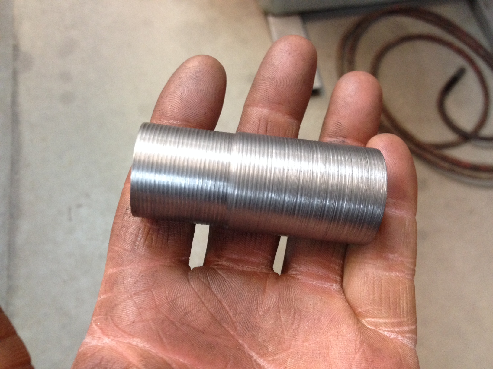 The rough turning leaves ribs that bite just a bit when pushed into the frame tubing