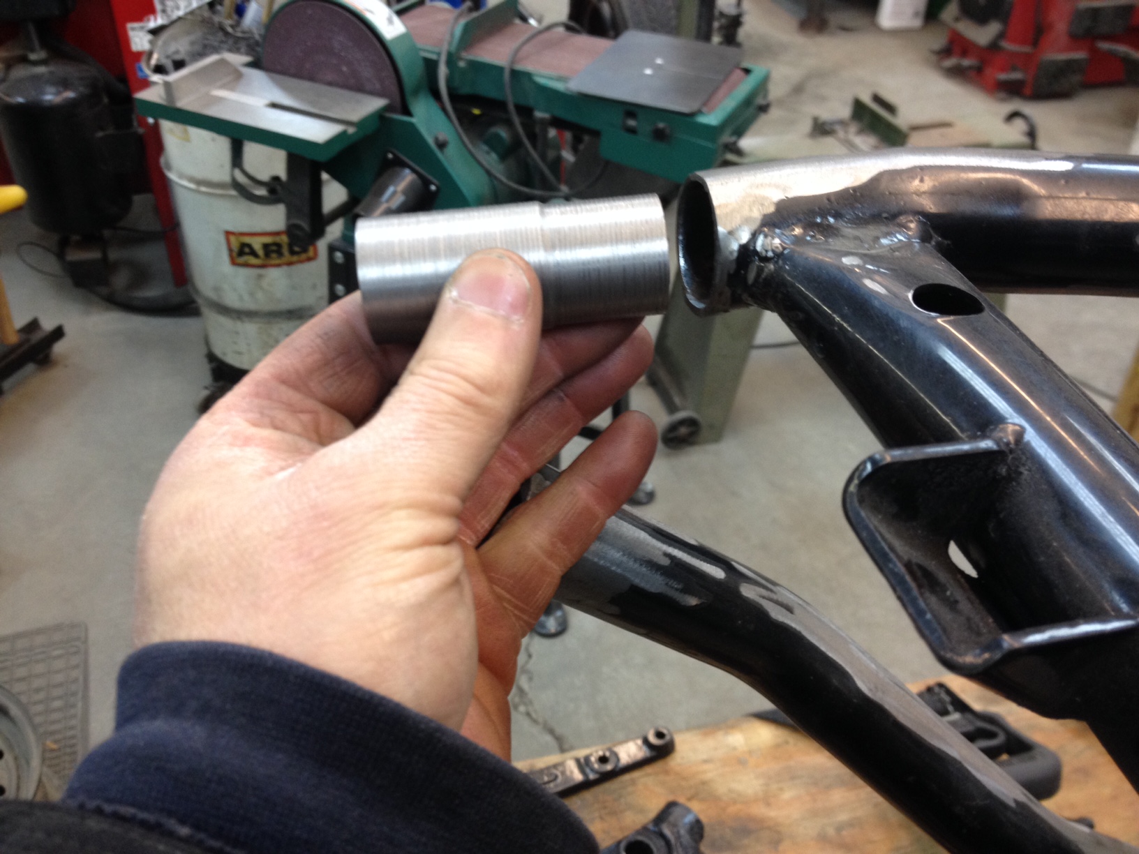 Making frame plugs to reinforce joints where new rear triangle pieces join